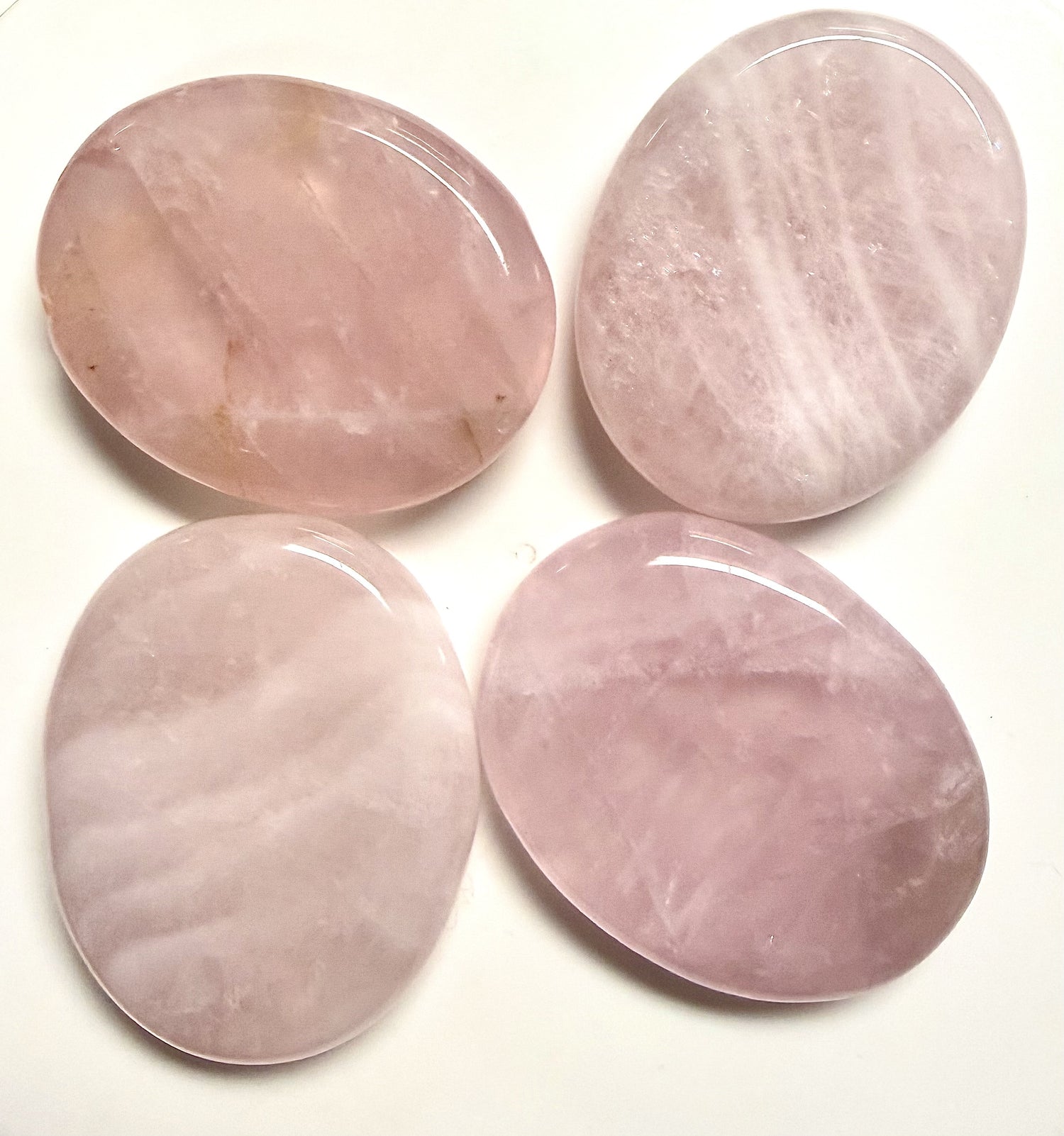 Rose Quartz worry stones are approx. 50x40x10mm and sold individually. The exact color, shape and size may vary.