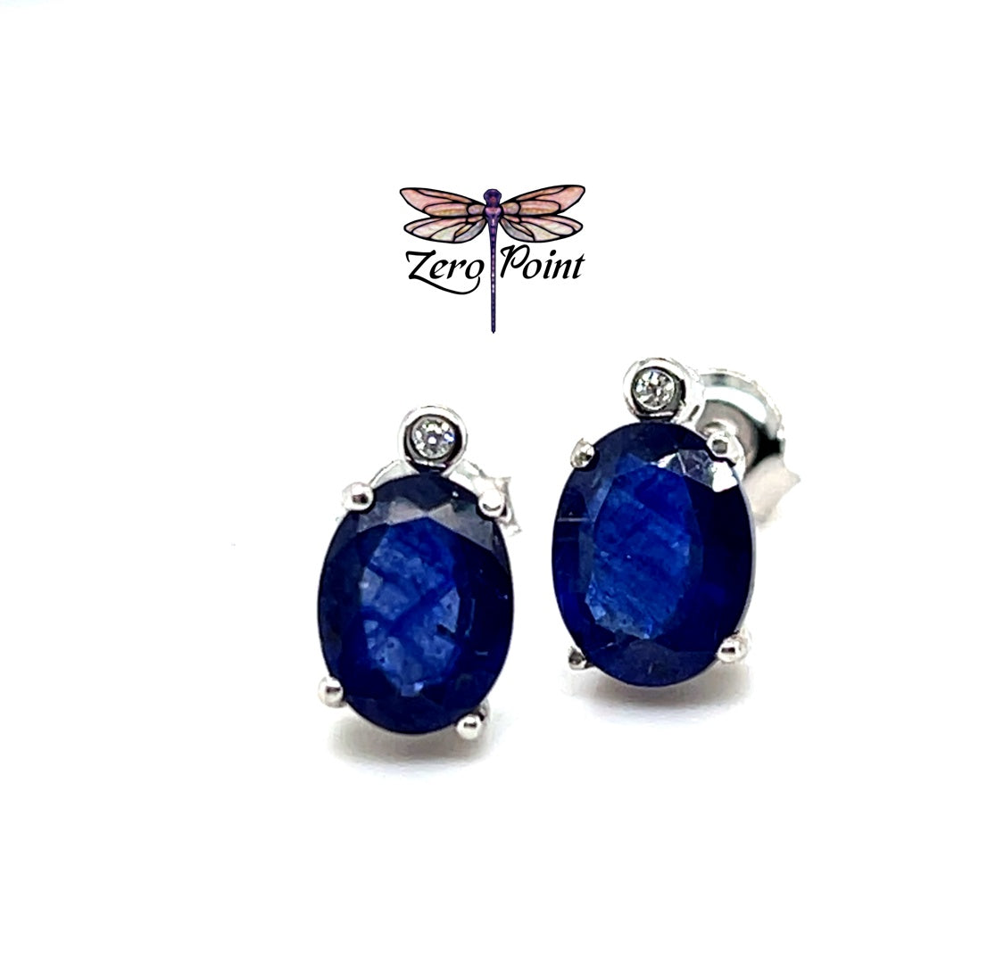 The Sapphire Earrings feature a pair of genuine 6x8mm Star Sapphire with white topaz accents stone set in a simple sterling silver post setting.
